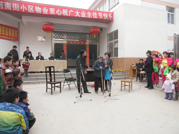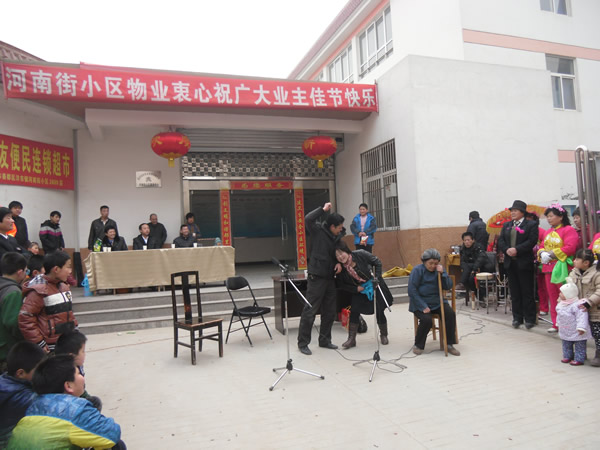 (信息員:李建華)農歷正月十三(2月4日),河南街小區鑼鼓喧天,彩旗招展,熱鬧非凡,呈現出一片祥和的節日氣氛。 上午10時聯歡會準時開演,小區業主自編自演的腰鼓舞、扇子舞、拉開了這次活動的序幕,他們以優美、歡暢的舞姿,以矯健穩定的舞步,揮舞著手中的彩帶與鼓錘,生龍活虎,時伏時起。精彩的表演,贏得了在場觀眾的陣陣掌聲,尤其是小品《遲到的紅梅》將聯誼會逐漸推向了高潮,詼諧幽默地方話臺詞、真情再現的感情留露,深深的感染著在場的每一位觀眾。同時也讓我們清醒的認識到,尊老愛幼的傳統美德,無論在什么時候,我們都應該繼承與發揚,理解與關愛自己身邊的長輩與老人。 通過這次聯誼會,不但拉近與改善了物業與業主的關系,也活躍了小區精神文化生活,同時也體現了物業與小區業主都是一家人的魚水之情,鼓舞了物業辦全體員工繼續搞好小區各項工作的信心。