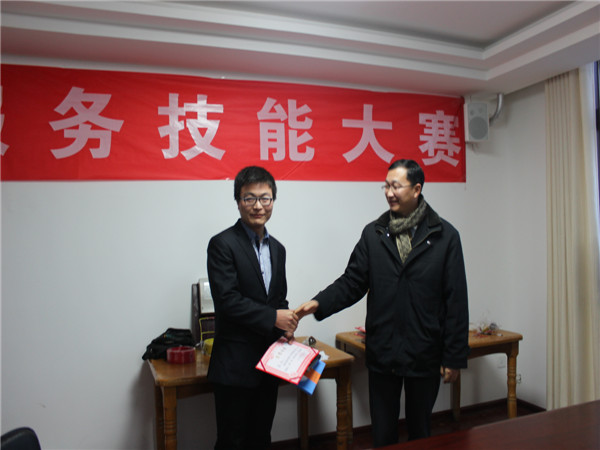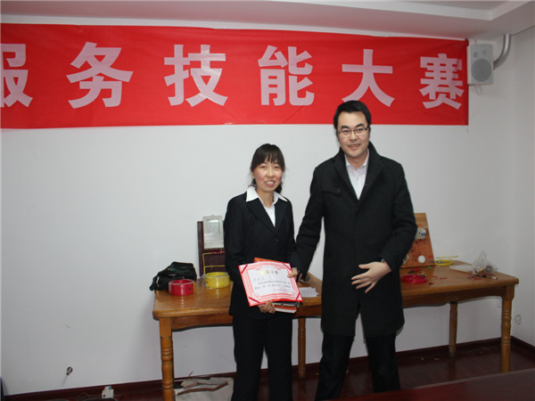 為不影響正常服務業主的工作,參賽選手由各服務中心根據實際情況推薦,重點凸顯青年員工。11名參賽選手在各自的項目中,沉著冷靜,思維明銳,業務嫻熟。工程維修項目的三相四線連接,為我們展現了公司電工扎實的接線工藝,財務收費項目的手工臺賬制作,為我們展現了公司收費員精確快速的計算功底,客戶服務項目的小區風采展示,為我們展示了客服人員生動的表達能力。大賽現場,來賓被選手們精彩的表現深深吸引,為他們報以熱烈的掌聲。經過一個多小時的緊張激烈角逐來自河南街小區的李俊杰、王威龍榮獲工程維修項目一等獎,來自安谷苑小區的李燕君榮獲財務收費項目一等獎,來自花半里小區的陳虎榮獲客戶服務項目一等獎。