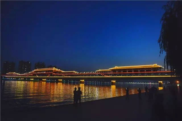 北起渭陽路,南至渭河南岸,橫跨渭河,連通世紀大道的“古渡廊橋”,名字源自關中八景之“咸陽古渡”,全長748米,寬14米,是全國首座秦建筑風格、雙層人行景觀廊橋,自建成以來立即成為我市地標性文化景觀之一。[ 詳細內容
